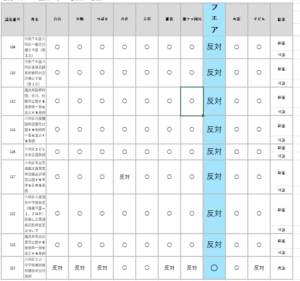 第三回定例会で議論した議案の中で、態度が分かれた議案の一覧です