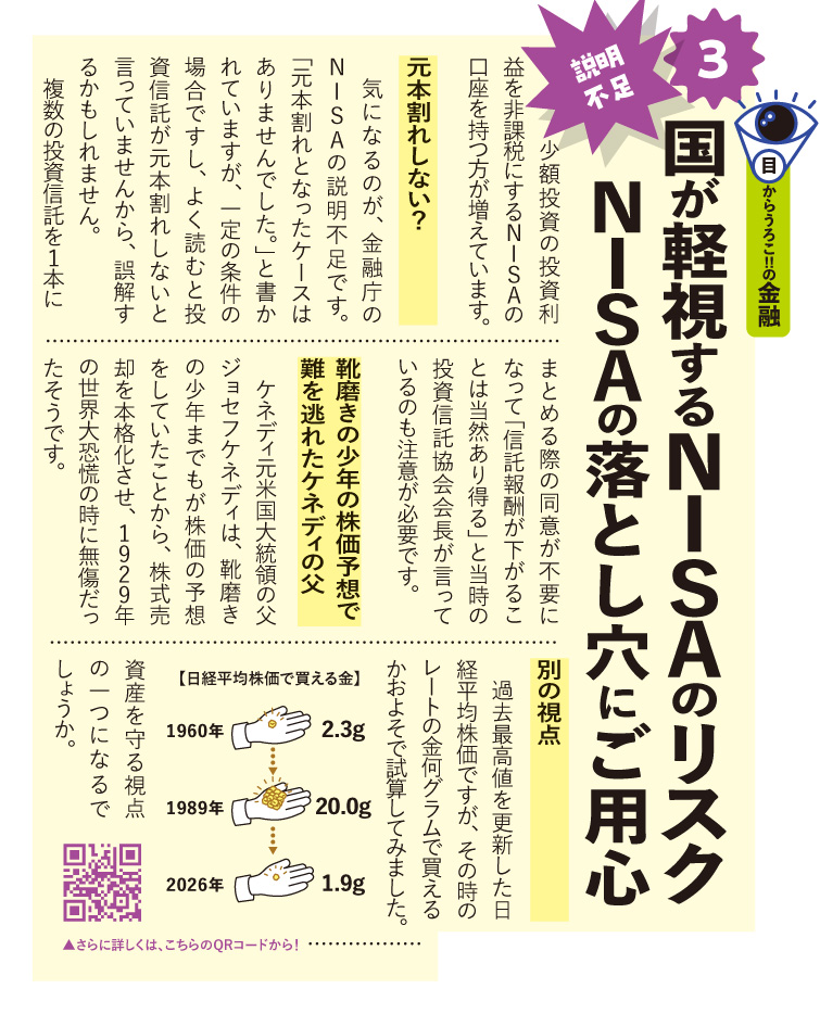 金融庁のNISAについての説明が、読む人に、投資のリスクを軽視させるのではないかということです。