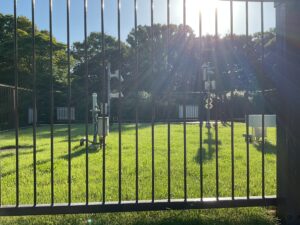お濠と露場(観測場所)の風を比べたら、露場の風通しが悪くなっていました。